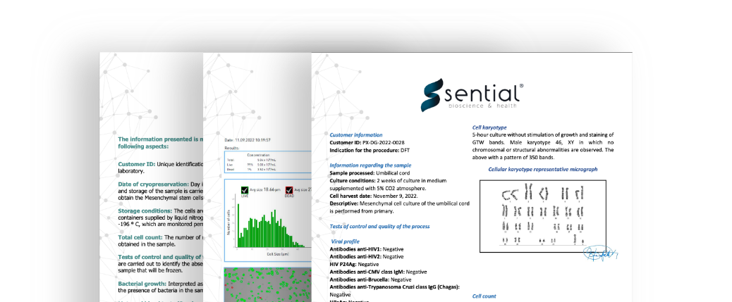 Designed to evaluate the samples from where the stem cells will be obtained before processing them, in this analysis, its safety is verified through a complete microbiological profile, and a karyotype confirms its genetic quality by band staining GTW.